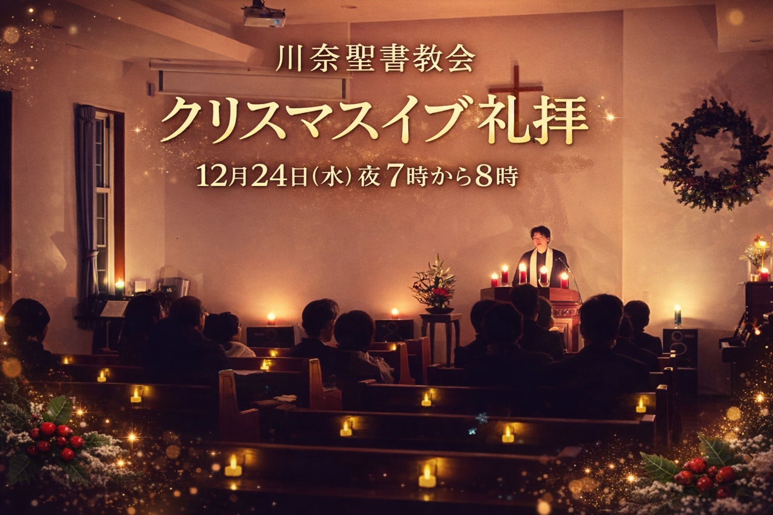 12月24日(水)夜7時~8時、クリスマスイブ礼拝を執り行います。